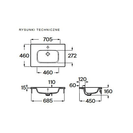 Roca > Санфаянс (Санітарна кераміка) > Umywalki meblowe > раковини > Меблевий умивальник Roca Vistoria-N 70 x 46 cm (do kompletacji z kolekcją Alpine)