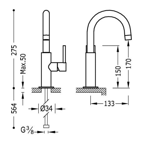 Tres > Арамтура / батареї > стоячі батареї для раковин > Study Colors CA, VO, GR > Змішувач для умивальника Tres Study Colors z boczną dźwignią, wys. 27,5 cm - volcanic