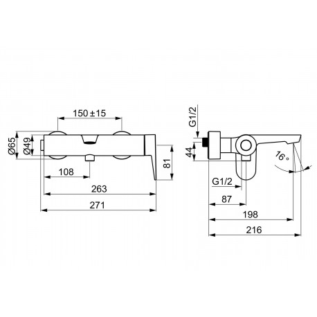 Oras > Арамтура / батареї > настінні ванні батареї > HansaGenesis > Змішувач ванно-душовий HansaGenesis, одноважільний, настінний монтаж - хромована сталь