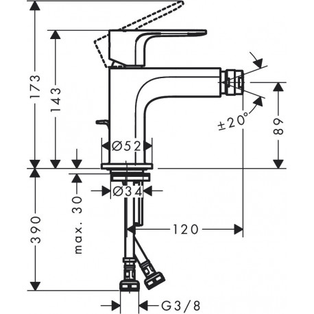 Hansgrohe > Арамтура / батареї > бідетові батареї > Rebis E > Змішувач для біде Hansgrohe Rebris E, одноважільний z metalowym kompletem odpływowym з тягою