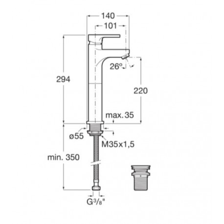 Roca > Арамтура / батареї > стоячі батареї для раковин > Arola > Змішувач для умивальника висока Roca Arola одноважільний, без пробки - хром