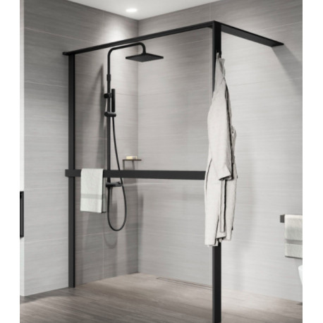Novellini > Душові кабіни > стінки для душа (walk-in) > Kuadra > Душова стінка Walk-In Novellini Kaudra HWS, 140x200cm, лівий варіант, з вішаком для рушника, profil чорний мат.