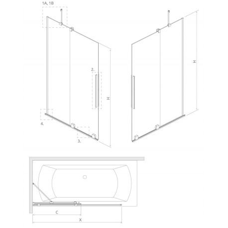 Radaway > Душові кабіни > Штори для ванни > Furo > Ширма для ванни Radaway Furo Gold PND II 100, лівий, скло прозоре, 100x150cm, przesuwny, profil золотий szczotkowany
