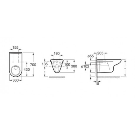 Roca > Санфаянс (Санітарна кераміка) > Ceramika dla osób niepełnosprawnych > Dostępna łazienka > Раковина WC Roca Доступно Łazienka 36x70 cm, підвісна, злив горизонтальний - біла