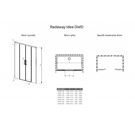 Radaway > Kabiny natryskowe > Idea > Idea > Двері wnękowe Radaway Idea DWD 140cm x 200.5cm - скло прозоре, profil GunMetal