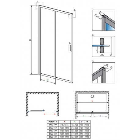 Radaway > Душові кабіни > Drzwi do wnęki > Alienta > Двері душові 110cm, Radaway Alienta Black DWJ, скло прозорі, profil чорний
