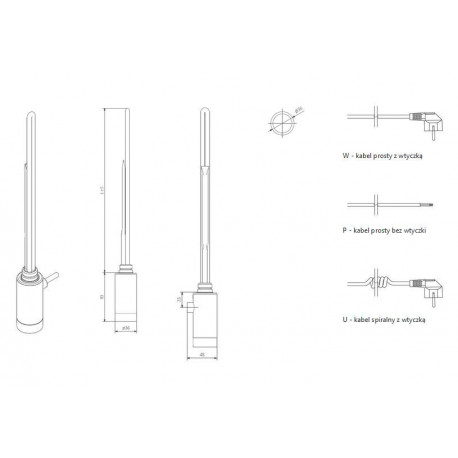Terma > Zawory, Głowice > Grzałki > Grzałki > Нагрів Terma One na profilu okrągłym R36, сила 300 W - хром