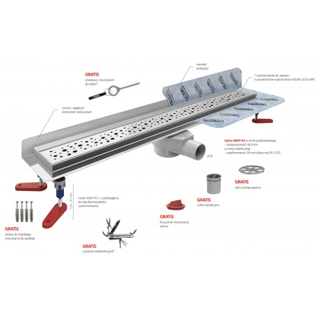Лінійне обтікання пристіний, pełny комплект, Wiper New Premium ZK Pure, 1200mm, сифон Drop 50, do wypełnienia płytkami, викінчення poler