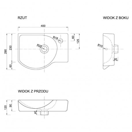 Defra > Санфаянс (Санітарна кераміка) > Umywalki meblowe > Meblowe > Меблевий умивальник Defra Tummy 40, прямокутна 40x29 cm, з отвором na baterie, z переливом - біла