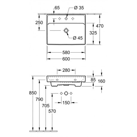 Villeroy & Boch > Санфаянс (Санітарна кераміка) > Підвісні раковини > Collaro > Умивальник Villeroy&Boch Collaro, 60x47cm, без переливу, Weiss Alpin