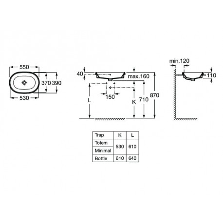 Roca > Санфаянс (Санітарна кераміка) > Umywalki wpuszczane w blat > Gap > Умивальник монтований в стільниці Roca Gap Round, 55x39cm, овальна, переливання, біла