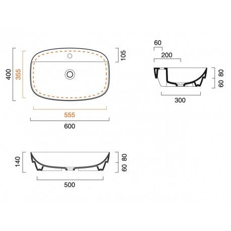 Catalano > Санфаянс (Санітарна кераміка) > Umywalki wpuszczane w blat > Green Lux > Умивальник монтований в стільниці Catalano Green Lux 60x40 cm отвір для змішувача, без переливу, біла