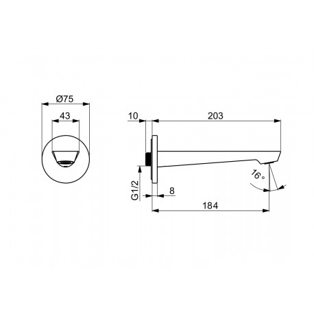 Oras > Арамтура / батареї > Wylewki do wanny > HansaGenesis > Кран do ванни HansaGenesis, довжина 180 mm - хромована сталь